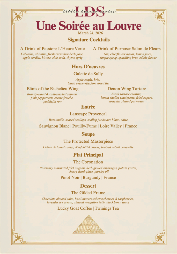 The Little Dinner Series is one of Tallahassee's best-kept quality dining secrets since 1957. Each semester, students in the Dedman College work side-by-side with instructors to create a series of four-course themed dinners. Every element – from the menu to décor – is conceptualized by a group of students tasked with planning and managing their own event.