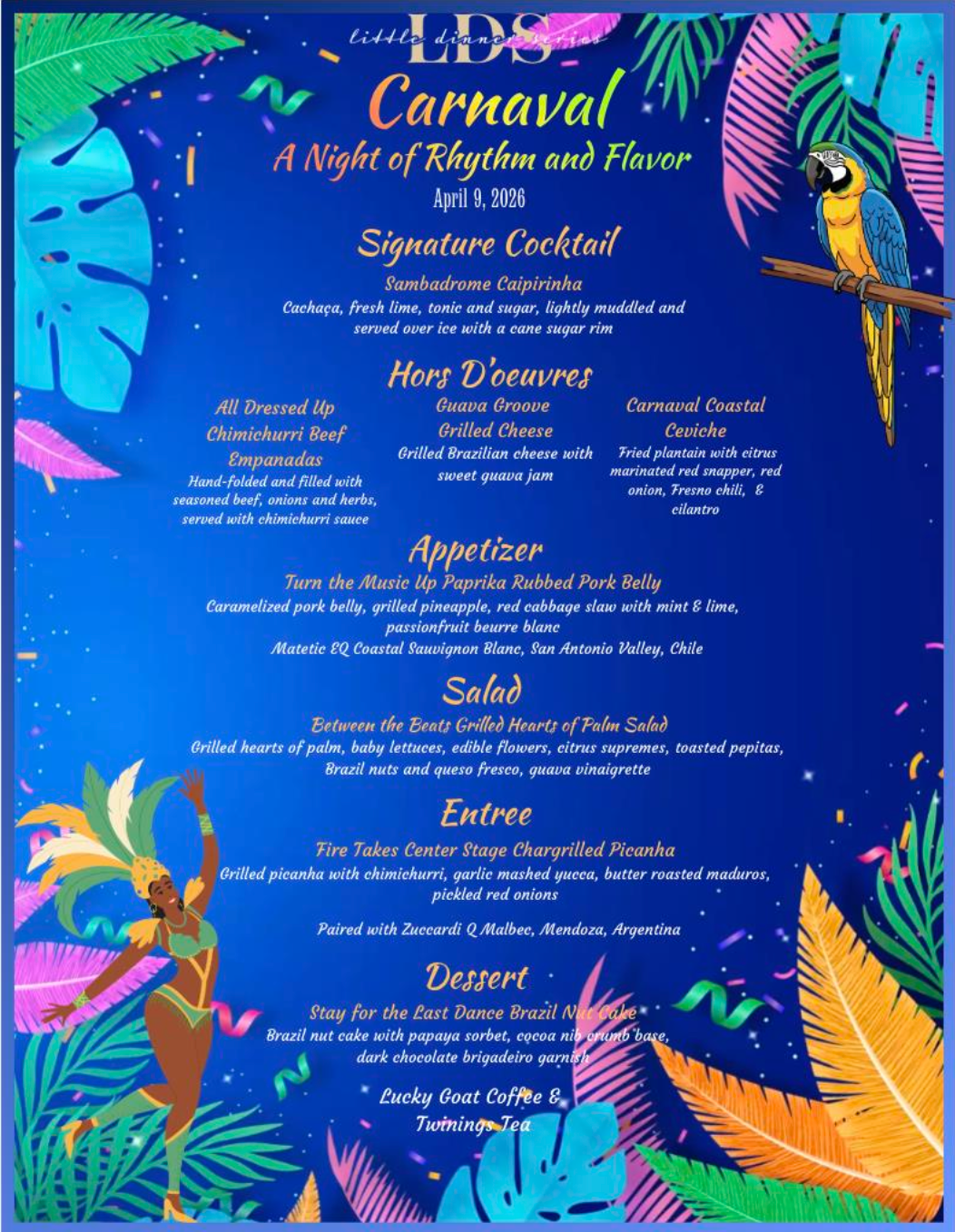 - Menus are subject to change. Once available, drafts are provided to give an idea of the students' dinner concepts.